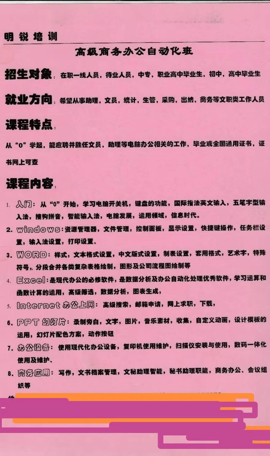 电脑课程(课程均属于技术,对学员学历没有要求)