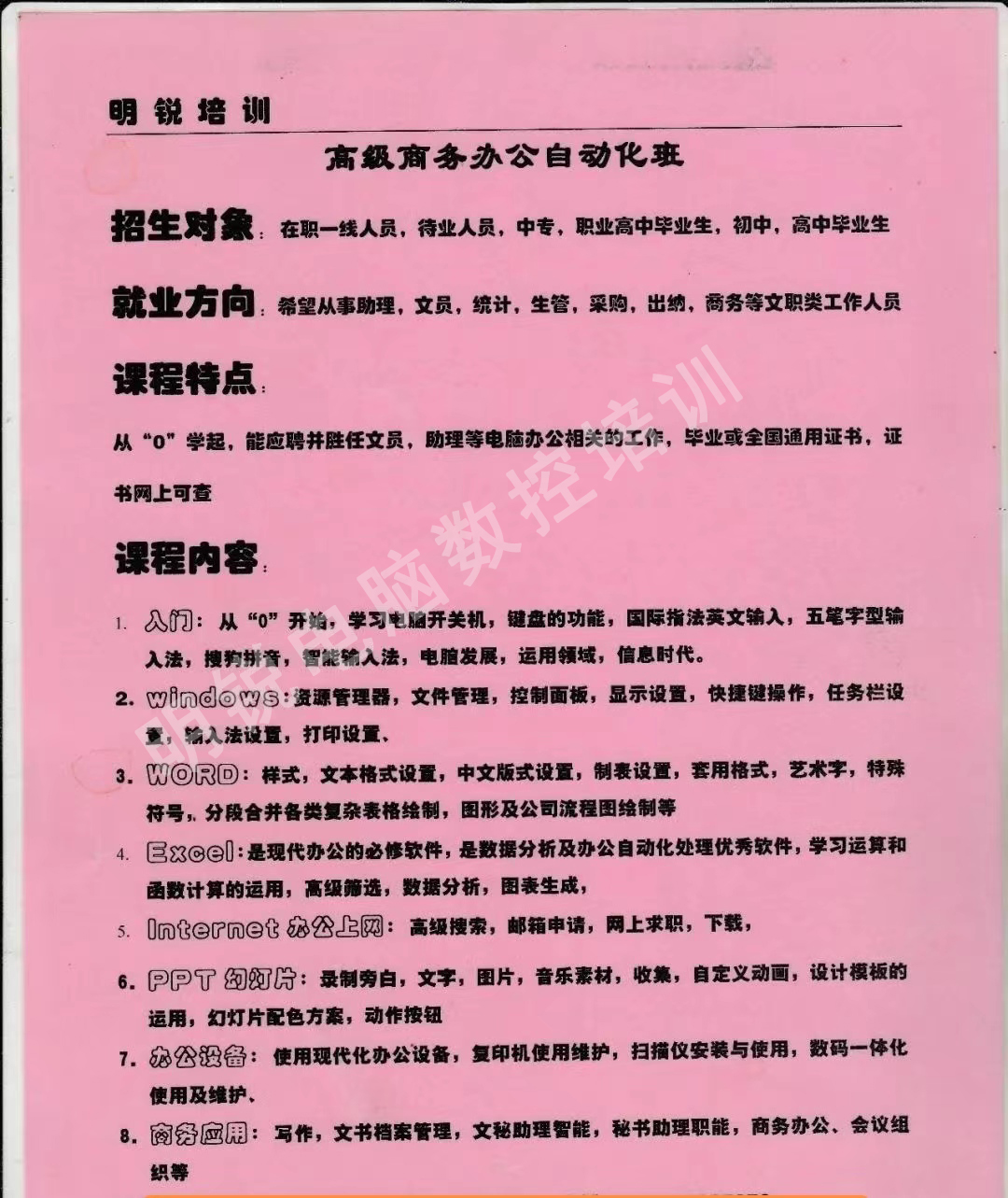 电脑课程(课程均属于技术,对学员学历没有要求)