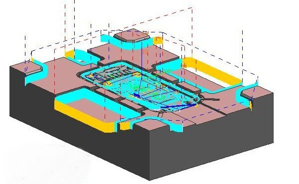 1) 简单电极的加工 a. 选择合理的刀具与切削参数 b. 通过负余量控制火花位 c. 通过骗刀方法控制火花位技术 2) 手机模一体电极的加工 a. 常见的手机模一体电极的表面要求 b. 表面质量与加工精度的控制 c. 清根加工的技巧 d. 小刀的使用及注意事项 e. 隙孔的加工及精度的保证 f. 电极须线切割位置在CNC的加工中须注意的事项 ![]() 3) 薄壁电极的加工 a. 防止薄壁电极在加工中变形 b. 精加工选择合理的加工刀具 c. 薄壁电极火花位的控制 d. 增加工辅助方式加工薄壁电极 4) 多方位电极的加工 a. 多方位电极加工工序的分析 b. 多方位电极加工装夹方式 c. 确保多方位电极的加工精度 d. 多方位电极接刀的技巧